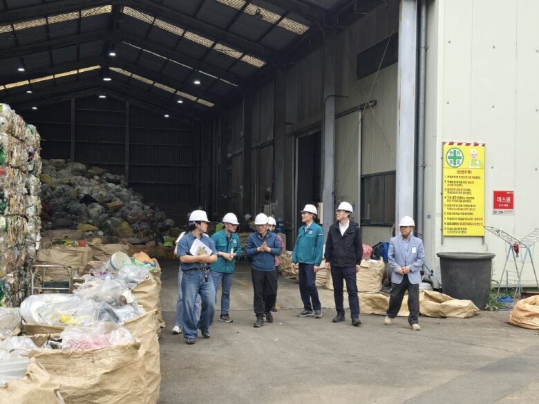 | ▲ 행안부 예방정책국 직원들이 13일 산청지역 농촌폐기물 종합처리시설을 점검하고 있다. [산청군 제공] |