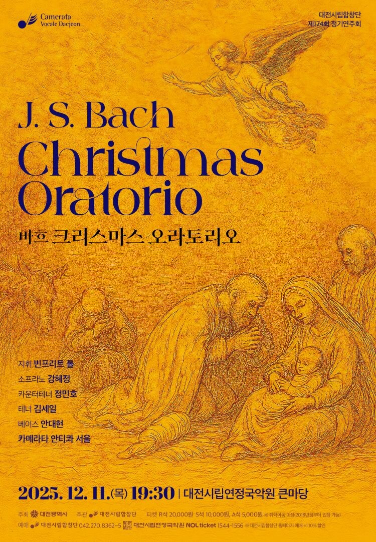 음악의 아버지로 불리는 바흐의 신앙심 깊은 예술 세계를 오롯이 경험할 수 있는 대전시립합창단의 '크리스마스 오라토리오'가 오는 11일 오후 대전시립연정국악원 큰마당에서 열린다.