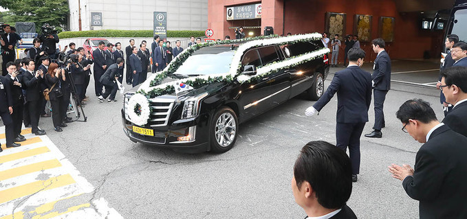 오전 발인식에는 차남 김홍업, 3남 김홍걸 씨와 문희상 국회의장 등 200여명의 인사들이 참석해 고인을 추모하고 장례예배를 위해 창천교회로 향하는 운구차량을 배웅했다.