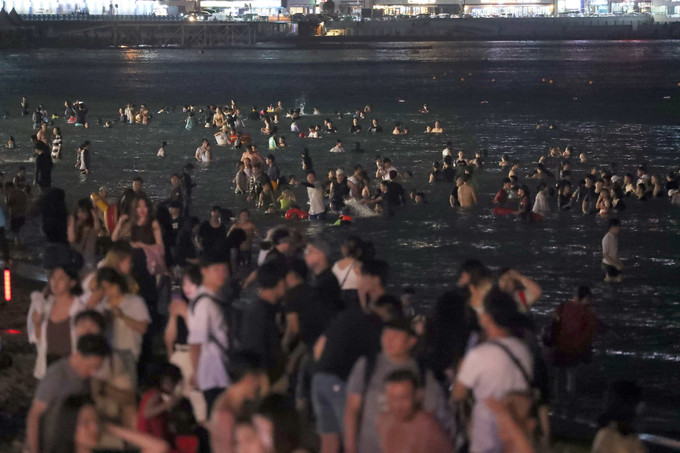 ▲ 1일 부산 해운대해수욕장에서 피서객들이 야간 물놀이를 하며 더위를 식히고 있다. 부산에서 보름째 열대야가 지속하는 등 잠 못 이루는 밤이 이어지고 있다. [연합뉴스 제공]
