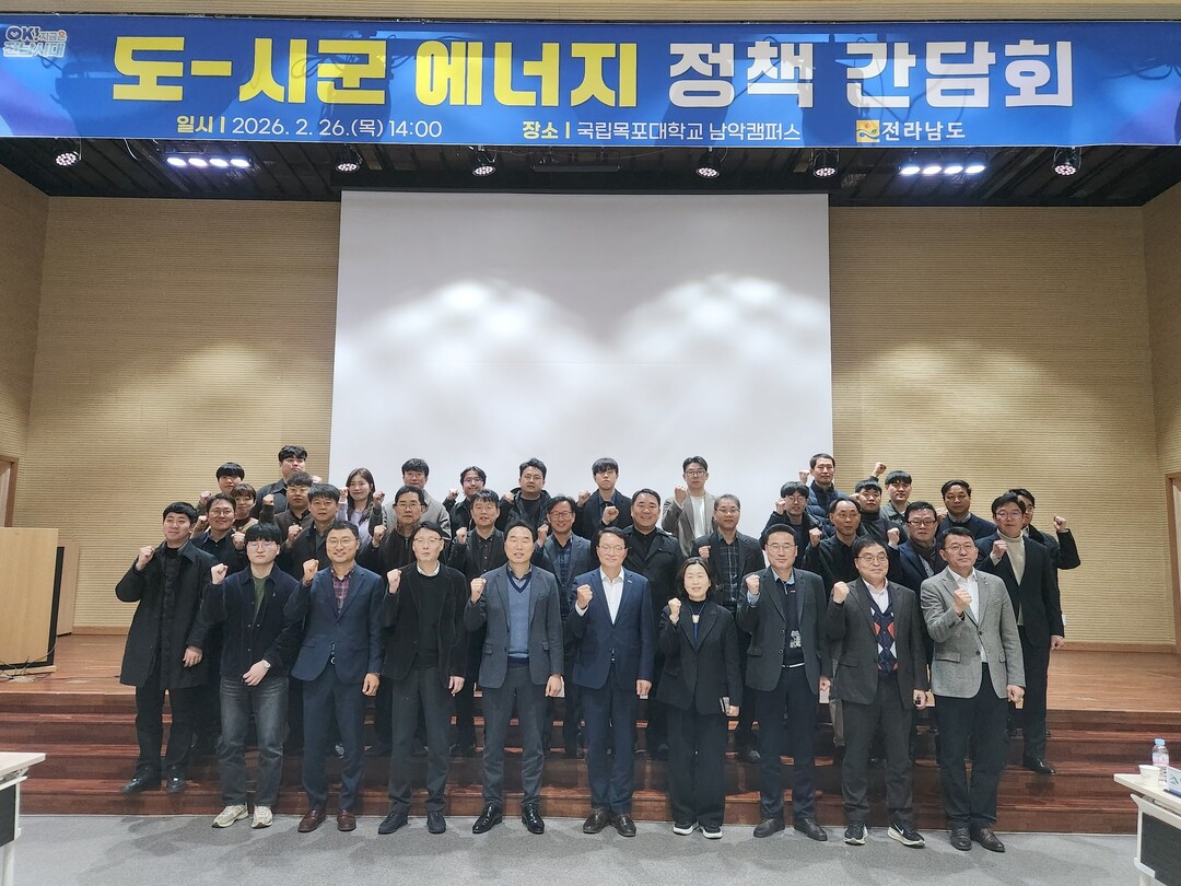 전남도는 지난 26일 국립목포대학교 남악캠퍼스에서 유현호 전남도 에너지산업국장과 22개 시군 에너지 담당 과장 등 100여 명이 참석한 가운데 정부 에너지 정책 기조에 대응한 지역 전략을 논의했다.