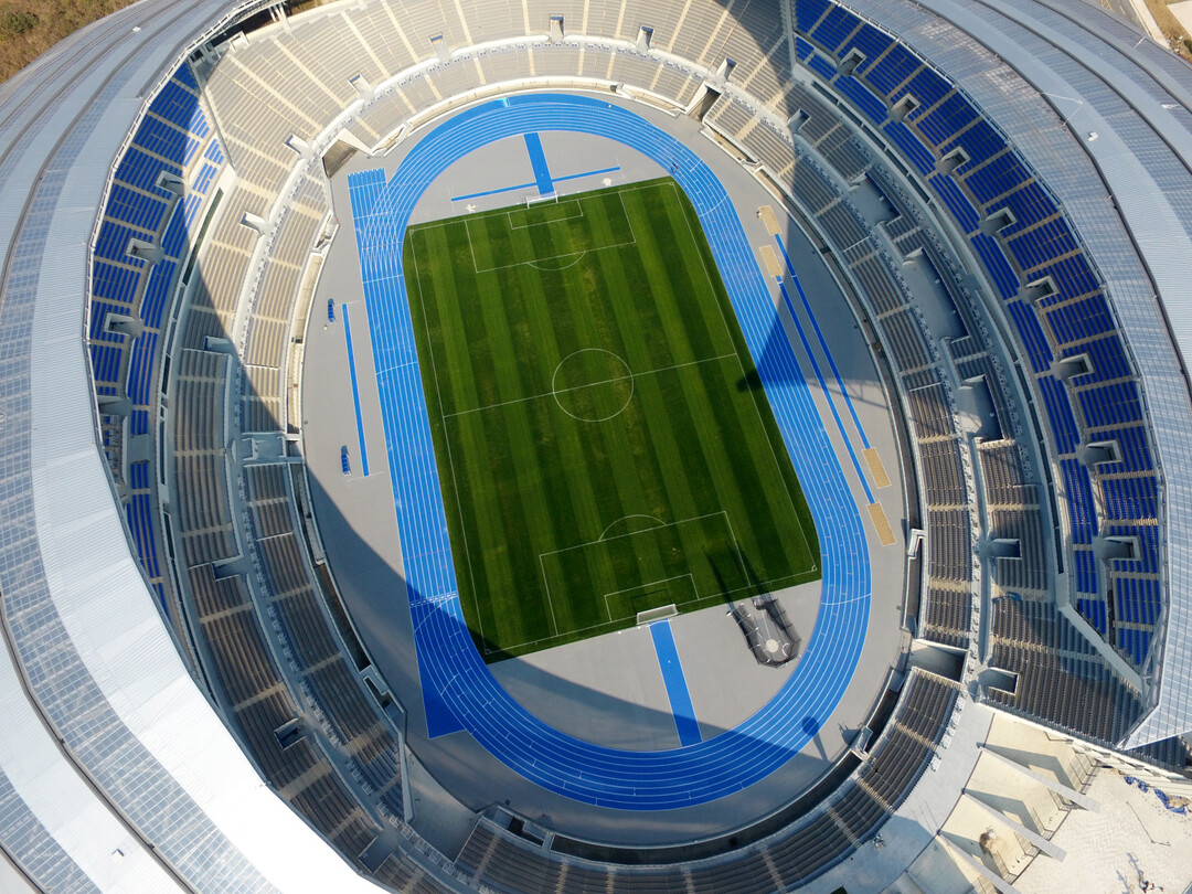 ▲ 드론으로 촬영한 용인미르스타디움 축구 경기장 모습.[용인시 제공]
