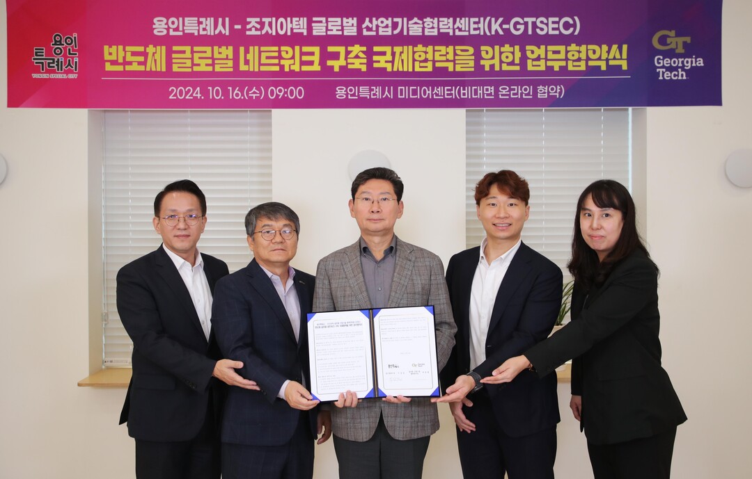 17일 용인시에 따르면 지난 16일 미국 조지아주 애틀랜타에 있는 조지아텍(GT, Georgia Institude of Technology) 대학의 글로벌 산업기술 협력센터(K-GTSEC)와 '반도체 글로벌 네트워크 구축 국제협력을 위한 업무협약'을 맺었다.