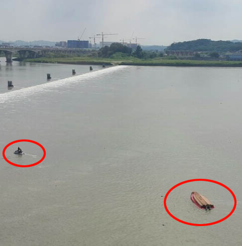 한편, 소방대원 A(37) 소방장과 B(37) 소방교 등 2명은 전날 오후 1시 33분께 "민간보트가 신곡수중보에 걸려 있다'는 신고를 받아 현장에 출동했다가 구조 보트가 전복되면서 실종됐다.