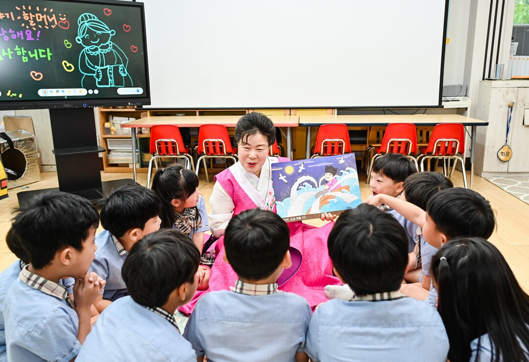 | ▲ '이야기 할머니'가 유치원에서 아이들에게 이야기를 들려주고 있다. [한국국학진흥원 제공] |