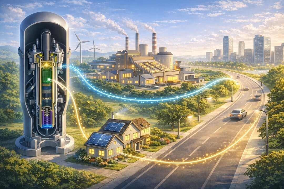 | ▲ 혁신형 소형모듈원전(i-SMR) 전력이 지역 산업시설과 생활 인프라로 확산되는 모습을 표현한 이미지. [경주시 제공] |