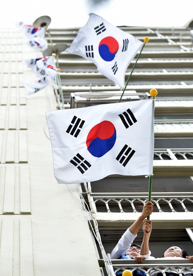비가 내리는 제74주년 광복절에 태극기 게양법이 관심을 받고 있다.
