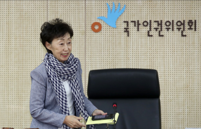 ▲ 최영애 국가인권위원장이 지난 11일 오후 서울 중구 국가인권위원회 전원위원회실에서 열린 제5차 전원위원회에 참석하고 있다. [뉴시스]
