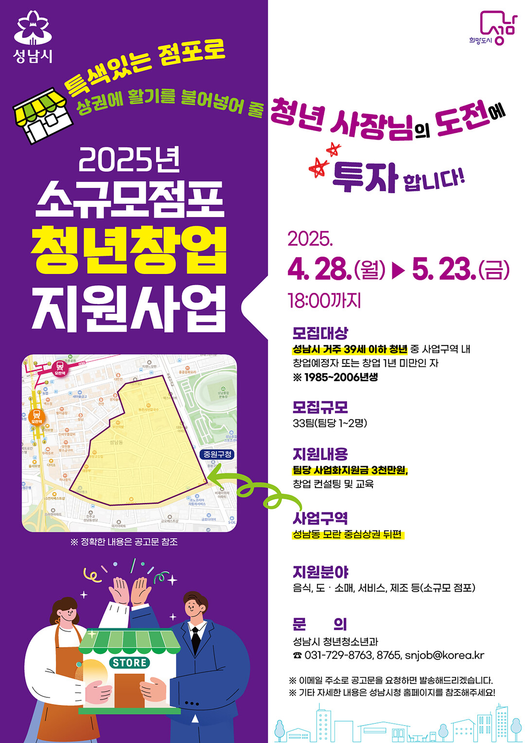 ▲ 성남시 '소규모 점포 청년창업 지원사업' 신청 안내 포스터.  [성남시 제공]