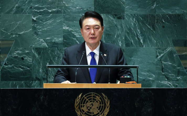 윤 대통령은 이날 미국 뉴욕에서 열린 제78차 유엔총회 기조연설에서 "대한민국과 동맹, 우방국들은 이를 좌시하지 않을 것"이라고 경고했다.