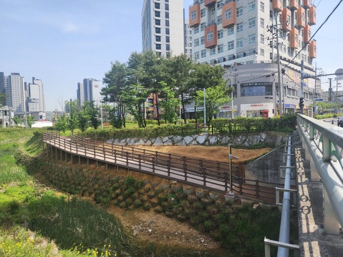 | ▲ 어사천 교량 밑에 조성된 하부통행로 모습 [진주시 제공] |