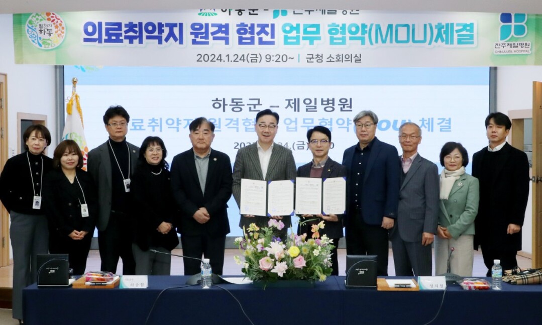 하동군은 지난달 24일 진주제일병원과 의료 취약지역 주민들의 의료접근성 향상을 위한 '원격협진 사업 업무협약'을 체결했다.