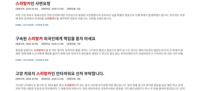 한 청원인은 "스리랑카인이 풍등을 일부러 기름 탱크로 보낸 것도 아니고, 이러한 경우 스리랑카인에게 과실에 대한 책임을 물어 구속영장을 발부할 것이 아니라 안전 및 통제 시설을 올바르게 구축하지 않은 관계자들을 징계해야 할 것"이라고 말했다.