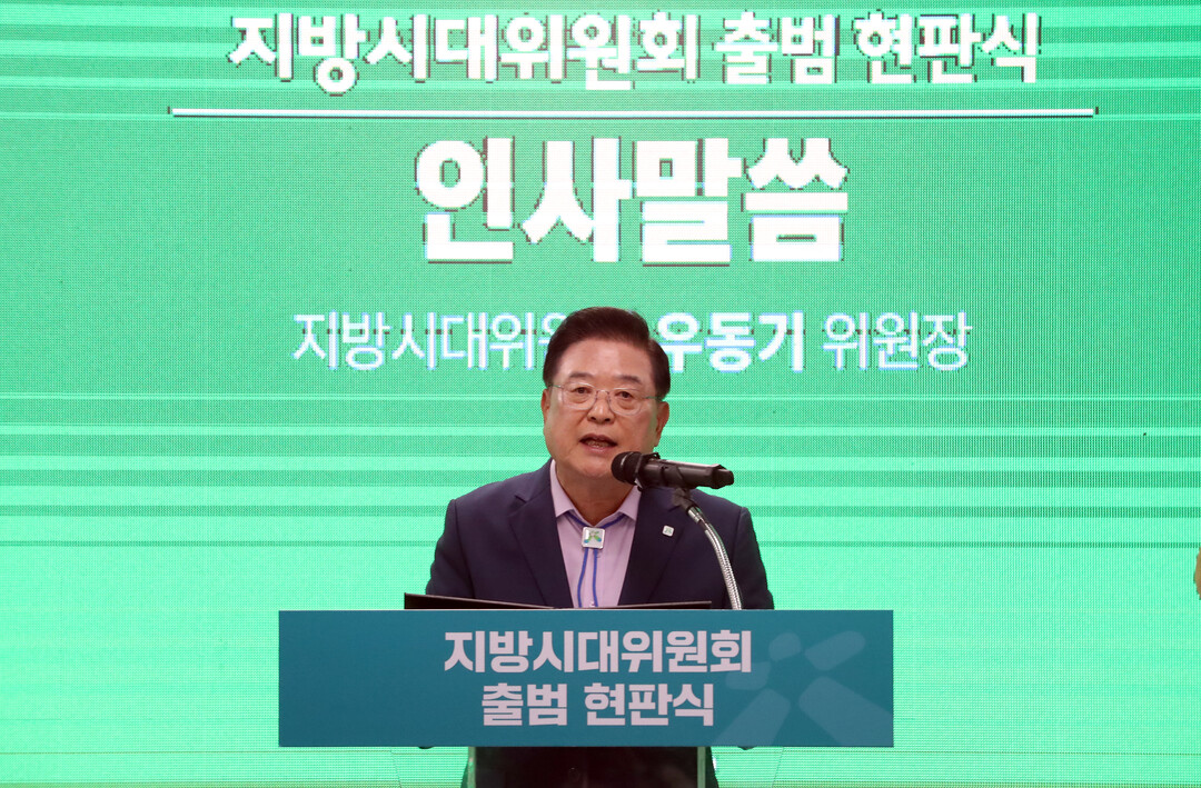 | ▲ 우동기 지방시대위원장이 지난 7월10일 세종시 KT&G 세종타워 빌딩에서 열린 지방시대위원회 출범식에서 발언하고 있다. [뉴시스] |