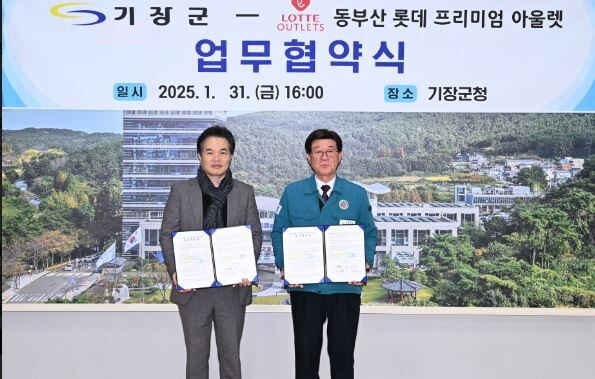 부산 기장군은 1월 31일 롯데몰 동부산점과 소상공인 지원 및 지역상생을 위한 업무협약을 체결했다. 협약식에는 정종복 군수, 롯데몰 동부산점 윤형진 점장 등이 참석했다.