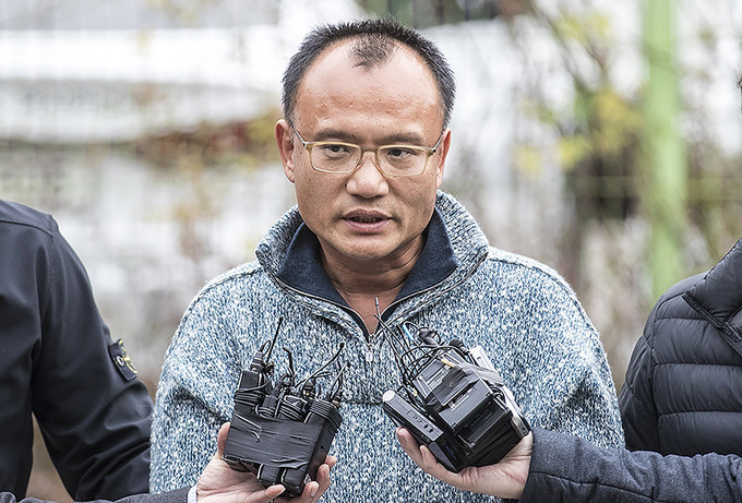 ▲ 직원 폭행 및 강요, 마약류 관리에 관한 법률 위반 등의 혐의로 체포된 양진호 한국미래기술 회장이 지난해 11월7일 오후 경기 수원시 경기남부지방경찰청 광역수사대로 압송되고 있다. [정병혁 기자]