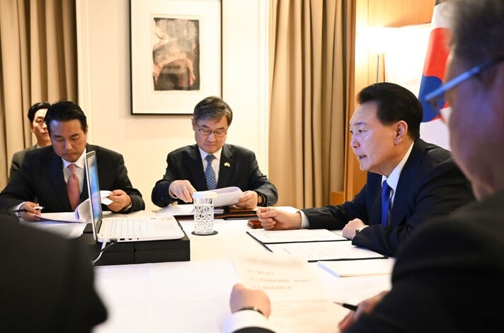 윤 대통령은 런던 숙소 호텔에서 화상으로 긴급 국가안전보장회의(NSC) 상임위원회를 주재하며 대응 조치를 지시했다.
