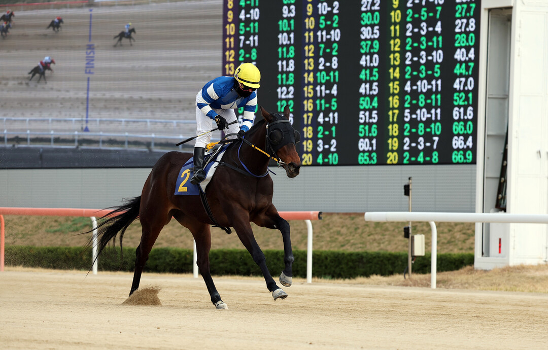 ▲ 3월말 열린 루나스테이크스에서 우승한 '판타스틱밸류' 경주 모습 [마사회 부산운영지원부 제공]