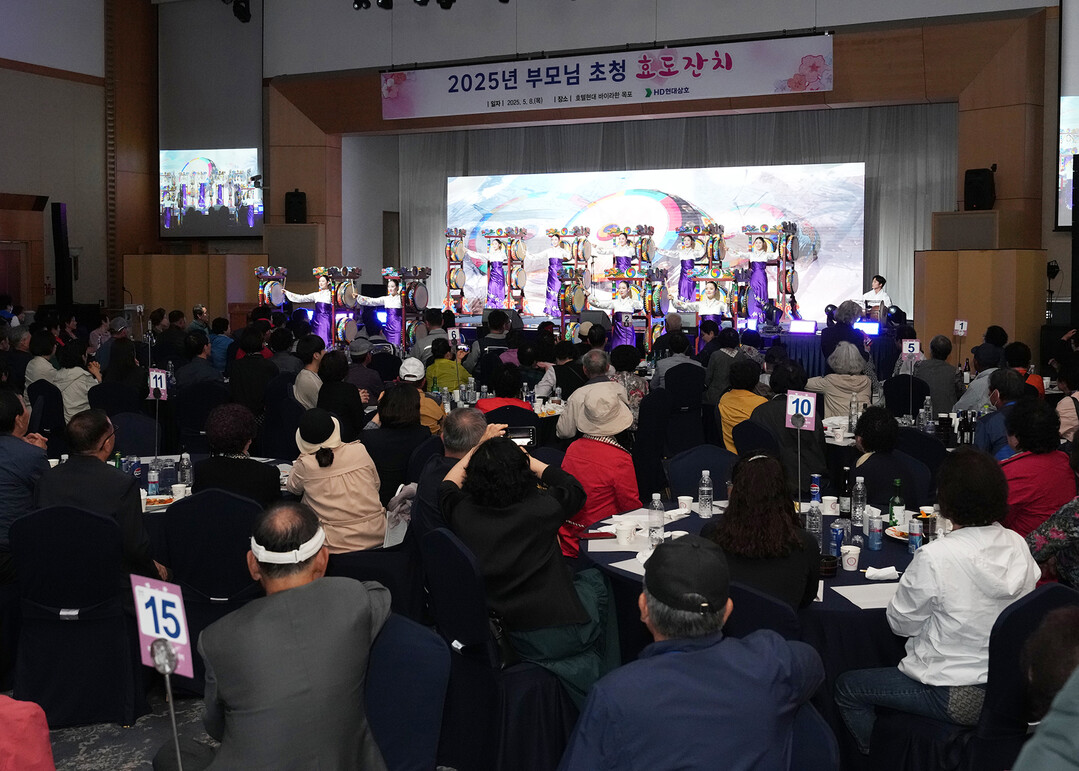 HD현대삼호가 노사화합과 가족친화적 기업문화 확산을 위해 지난 8일 '부모님 초청 효도잔치'를 개최했다.