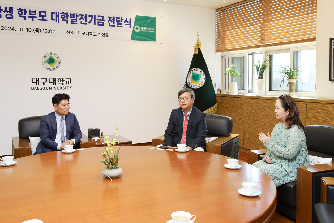 ▲대구대 박순진 총장(좌측)과 부모가 간담회를 갖고 있다.[대구대 제공] |