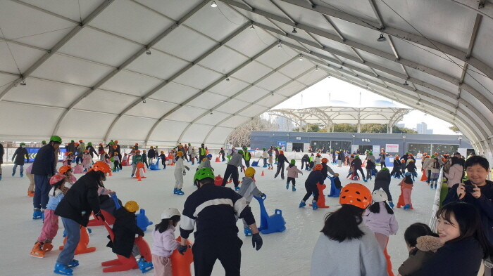 야외스케이트장은 스케이트장과 썰매장, 아이스튜브슬라이드 등 세 가지 시설로 구성돼 있다. 아이스링크 전체에 지붕을 설치함으로써 개장 내내 양호한 빙질 상태를 유지했다고 진주시는 설명했다.