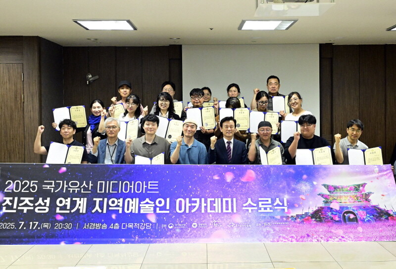 경남 진주시는 17일 서경방송 다목적실에서 '2025 국가유산 미디어아트 진주성 연계 지역예술인 아카데미' 수료식을 개최했다.