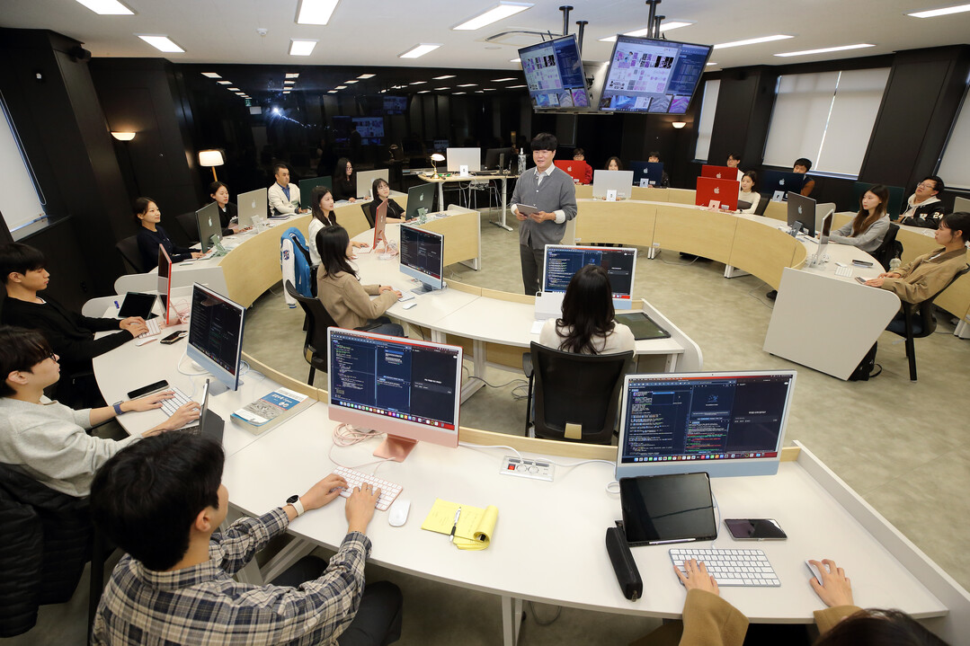 | ▲ 학생들이 인공지능 메디컬 실습실에서 수업을 받고 있다. [대학 측 제공] |