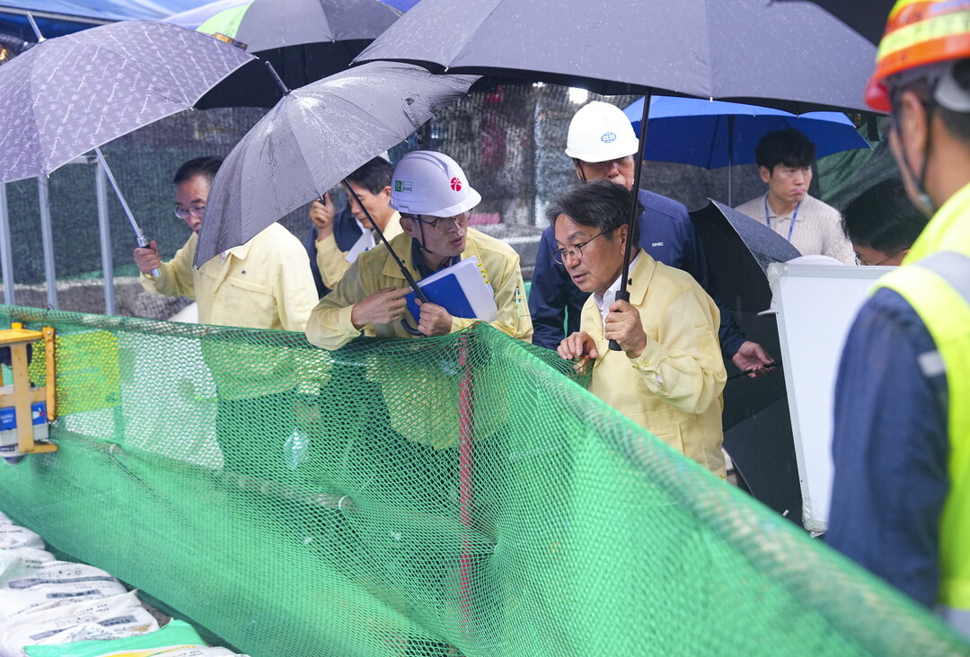 | ▲ 강기정 광주광역시장이 지난 12일 오전 서구 금호동 도시철도2호선 상수도 누수피해 현장을 찾아 복구상황을 점검하고 있다. [광주광역시 제공] |