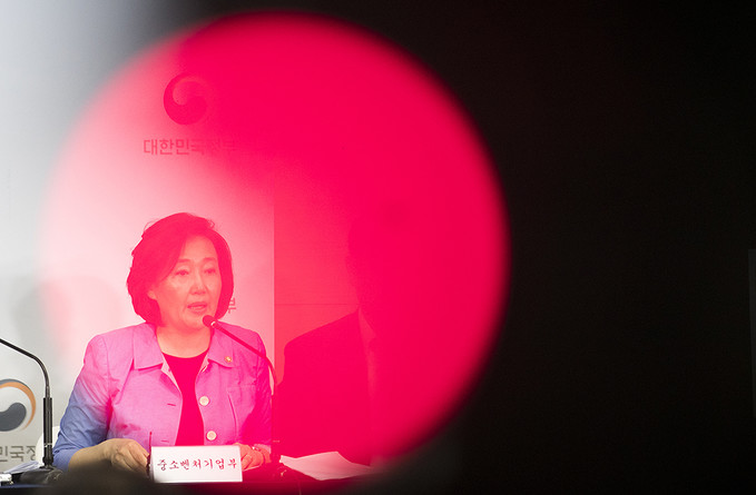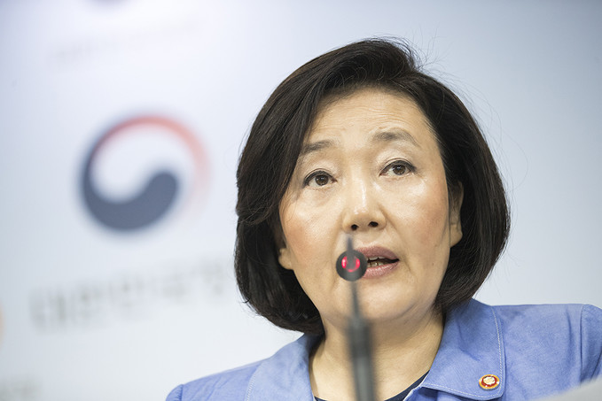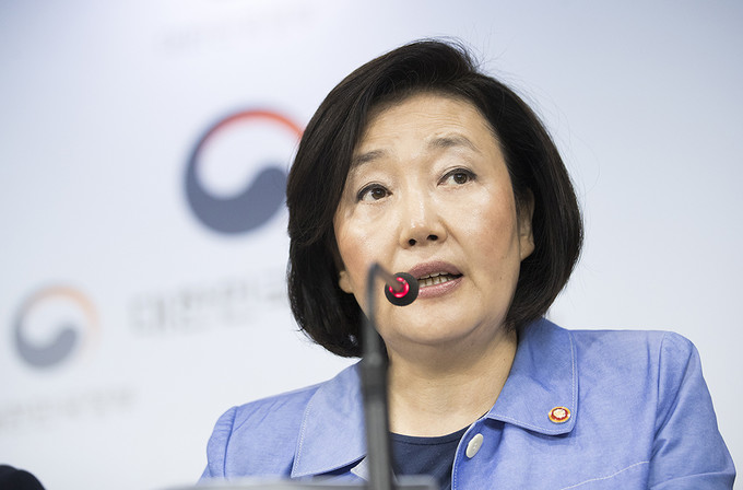 박영선 중소벤처기업부 장관이 5일 오전 서울 종로구 정부서울청사에서 대외의존형 산업구조 탈피를 위한 소재·부품·장비 경쟁력 강화 대책을 발표하고 있다.