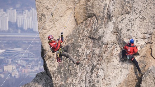 ▲ 지난해 3월19일 서울산악조난구조대가 서울 도봉산 우이암에서 인명 구조훈련을 실시하는 모습 [뉴시스]
