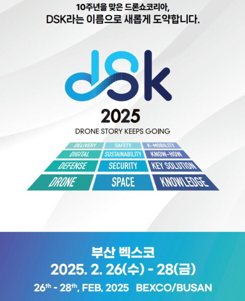 아시아 최대 드론 전시회 및 컨퍼런스 'DSK 2025'(드론쇼코리아)가 26일부터 28일까지 3일간 부산 벡스코에서 개최된다. 부산시·산업통상자원부·국토교통부·국방부·우주항공청 공동주최, 벡스코·한국무인기시스템협회 주관으로 진행된다.