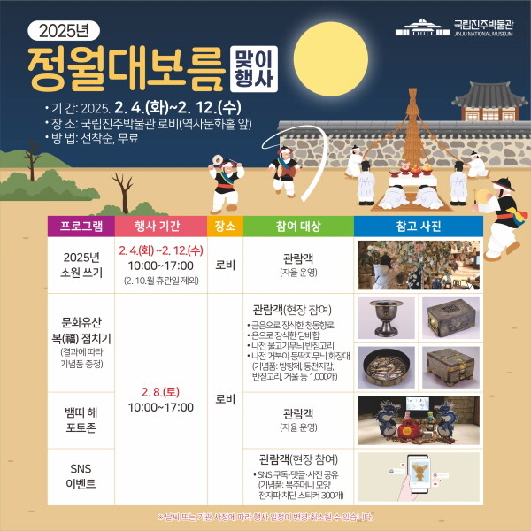 국립진주박물관(관장 장용준)은 오는 12일 정월대보름을 맞아 4일부터 다양한 이벤트를 개최한다고 3일 밝혔다.