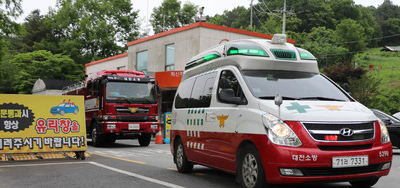 ▲ 지난해 5월 29일 대전 유성구 외삼동 한화 대전공장 51동 충전공실 에서 폭발사고가 발생해 소방차와 구급차가 현장을 빠져나가고 있다. [뉴시스]