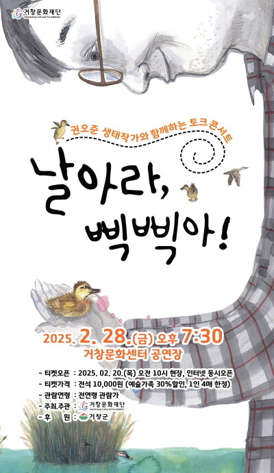 경남 거창문화재단(이사장 구인모 군수)은 오는 28일 오후 7시 30분 거창문화센터 공연장에서 생태동화 음악극 '날아라, 삑삑아!'를 개최한다고 17일 밝혔다.