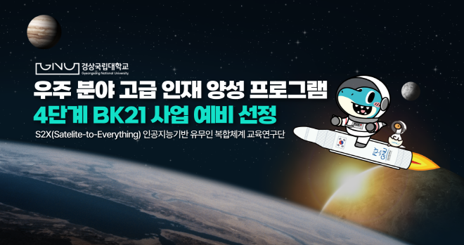 교육부와 한국연구재단이 26일 발표한 '4단계 두뇌한국21(BK21) 혁신인재 양성사업' 우주 분야 추가 선정평가 (예비)결과 경상국립대 'S2X(Satelite-to-Everything) 인공지능기반 유무인 복합체계 교육연구단'(단장 이왕상 전자공학부 교수)이 뽑혔다.