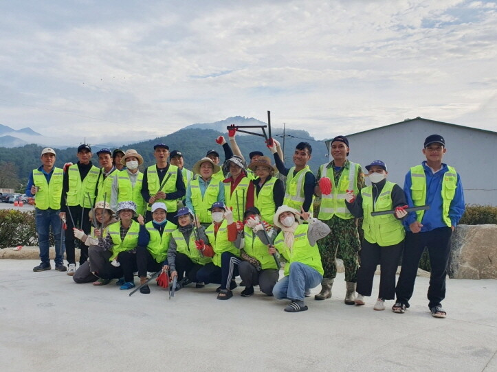| ▲ 외국인 계절근로자들이 함양지역에서 기념촬영을 하고 있다. [함양군 제공] |