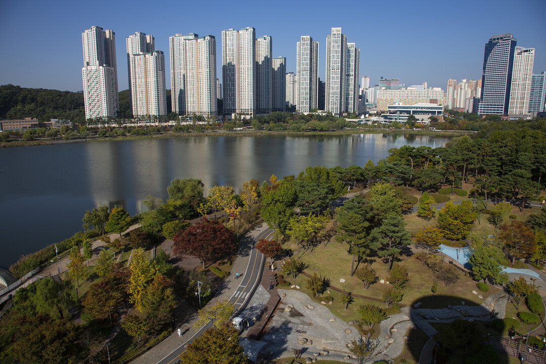 | ▲ 수원 프라이부르크 전망대에서 바라본 광교 호수 공원 일대 모습.[경기관광공사 제공] |