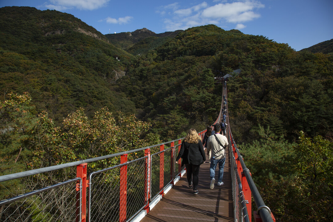 출렁다리를 사이에 두고 푸른 산과 높은 하늘과 어우러지는 가을 풍경은 그야말로 압권이다. 다리를 건너는 동안 멀리 보이던 운계전망대와 범륜사가 가까워지고, 눈이 부시도록 청명한 하늘이 손에 잡힐 듯 가까워진다. 11월까지 매주 토요일 경관조명을 밝히는 야간개장행사도 운영한다.