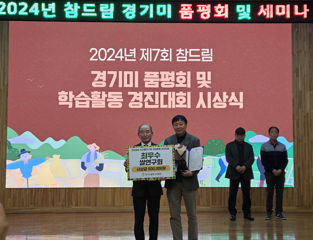 경기 시흥시가 육성·지원하는 시흥시쌀연구회가 지난 12일 경기도농업기술원에서 열린 '2024년 경기도 시군쌀연구회 학습활동 경진대회'에서 최우수상을 받았다.