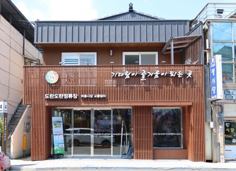 경남 하동군 읍내의 신개념 교통 쉼터가 주민들의 소통을 위한 복합문화 거점 역할을 톡톡히 해내고 있다.