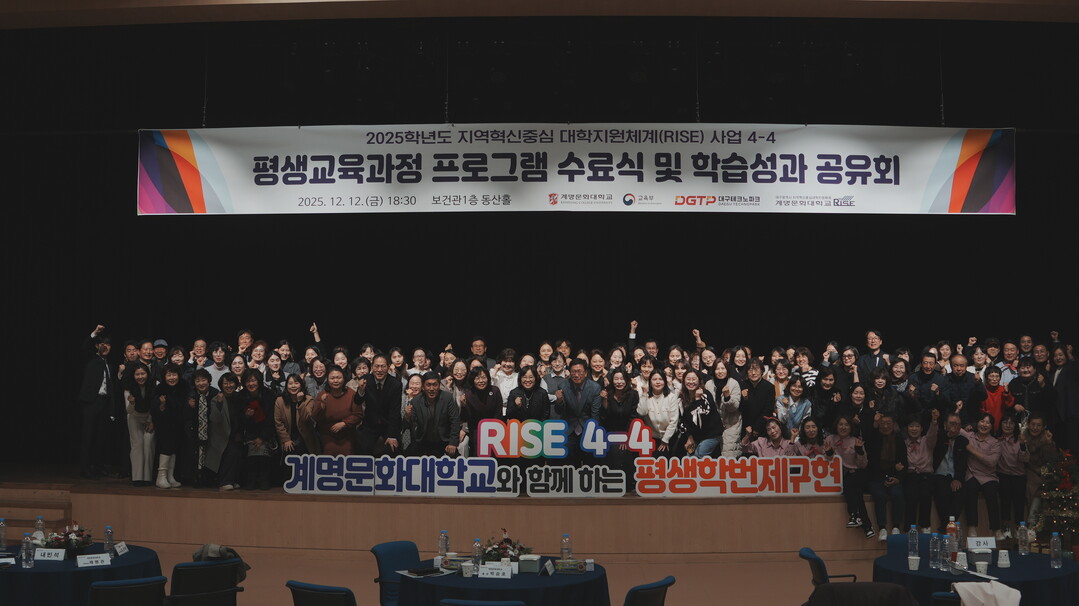 계명문화대는 지역혁신중심 대학지원체계(RISE) 사업을 기반으로 추진해 온 평생학번제 구현 성과를 공유하기 위해 최근 보건관 동산홀에서 '2025학년도 평생교육과정 수료식 및 학습성과 공유회'를 개최했다고 22일 밝혔다.