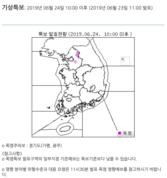 기상청에 따르면 경기도 가평군·광주시 등 일부 경기 동부에는 이날 오전 10시를 기해 폭염주의보가 발효됐다.