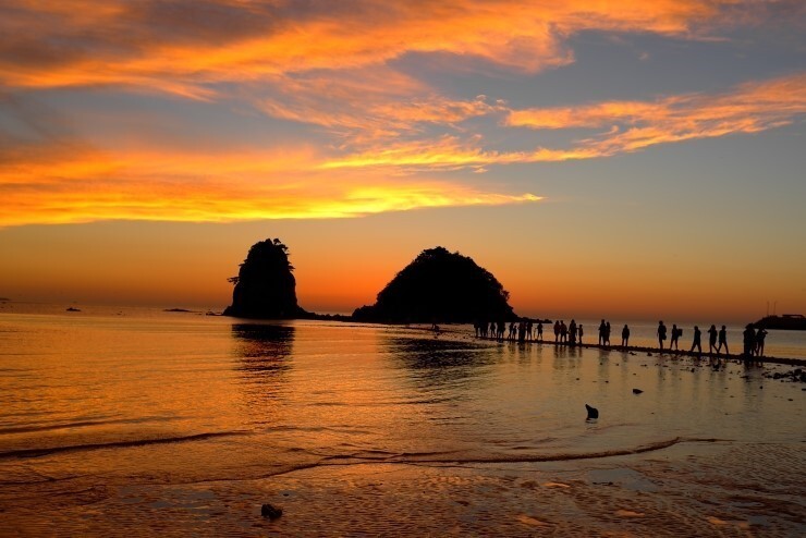 '꽃지해수욕장'은 국내 3대 낙조 명소이자 한국관광 100선에 7회 연속 선정된 해변으로, 할미바위와 할아비바위 사이로 떨어지는 석양이 장관을 이룬다. 바닷물이 빠지면 바위까지 직접 걸어갈 수도 있으며, 인근에 조성한 인피니티 스튜디오는 감각적인 사진 촬영 장소로 인기다.