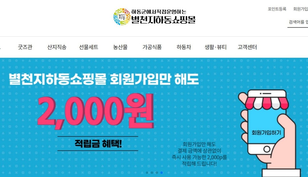 | ▲ '하동군에서직접운영하는 별천지 하동 쇼핑몰' 홈페이지 초기화면 캡처 |