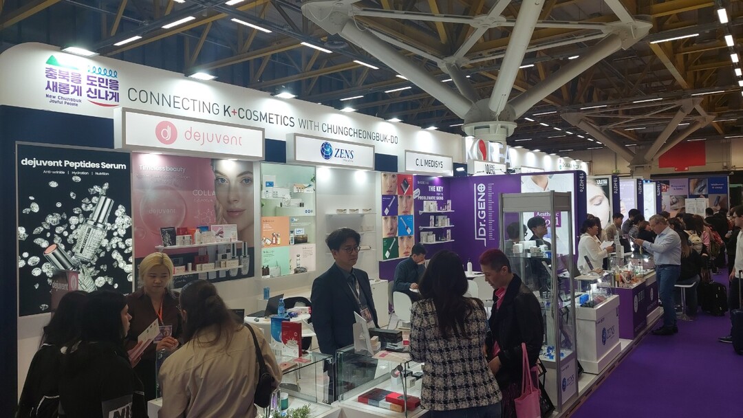 충북도 공동관에는 코리안이센셜(아이크림 및 뷰티 디바이스), 바이오글로리우스(기능성화장품), 데쥬벤트(펩타이드세럼), 씨엘메디시스(케미컬필-전문가용 화장품), 미뇽(속눈썹 펌제), 젠스인터내셔널(스킨부스터), 스톨존바이오(기능성화장품)가 참가했다.