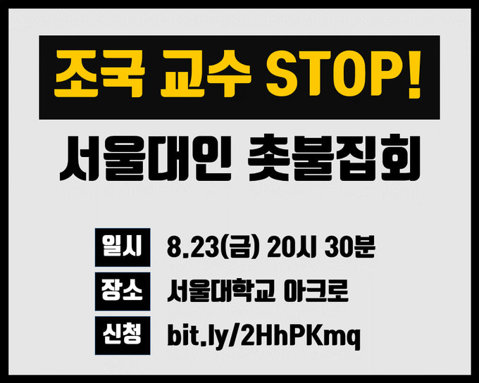 서울대 학생들은 이날 오후 8시 30분 관악캠퍼스 학생회관 앞 광장에서 조 후보자의 법무부 장관 후보직 및 서울대 교수직 사퇴를 요구하는 '조국 교수 STOP! 서울대인 촛불집회'를 연다.