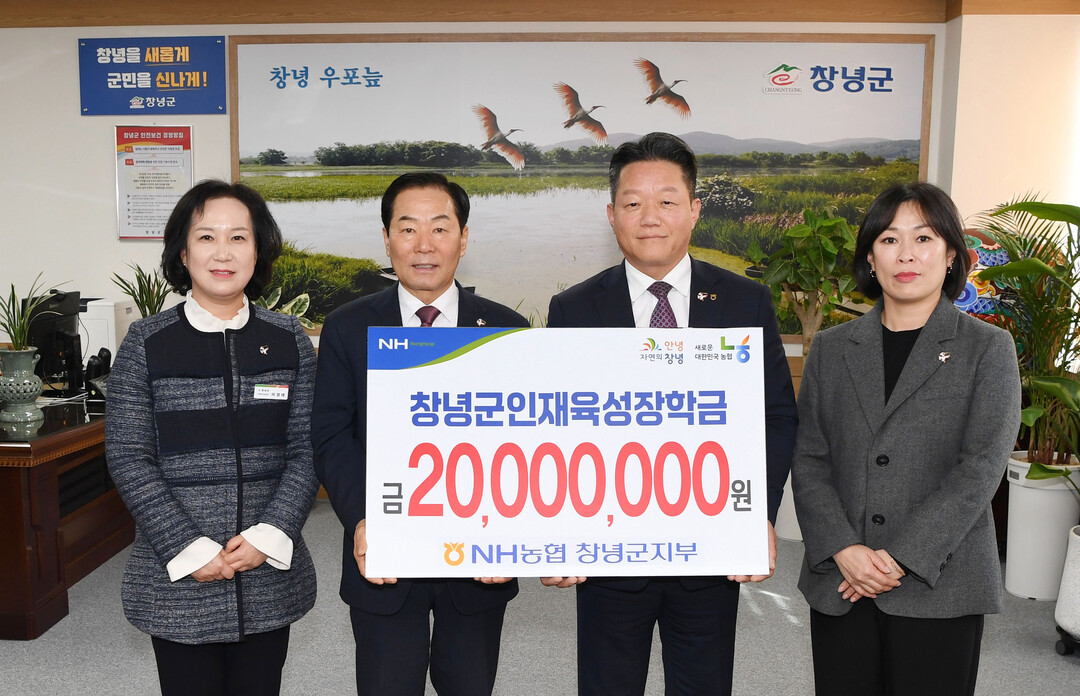 NH농협 경남 창녕군지부(지부장 신우경)는 25일 창녕군인재육성장학재단(이사장 성낙인 군수)에 기금 2000만 원을 기탁했다.