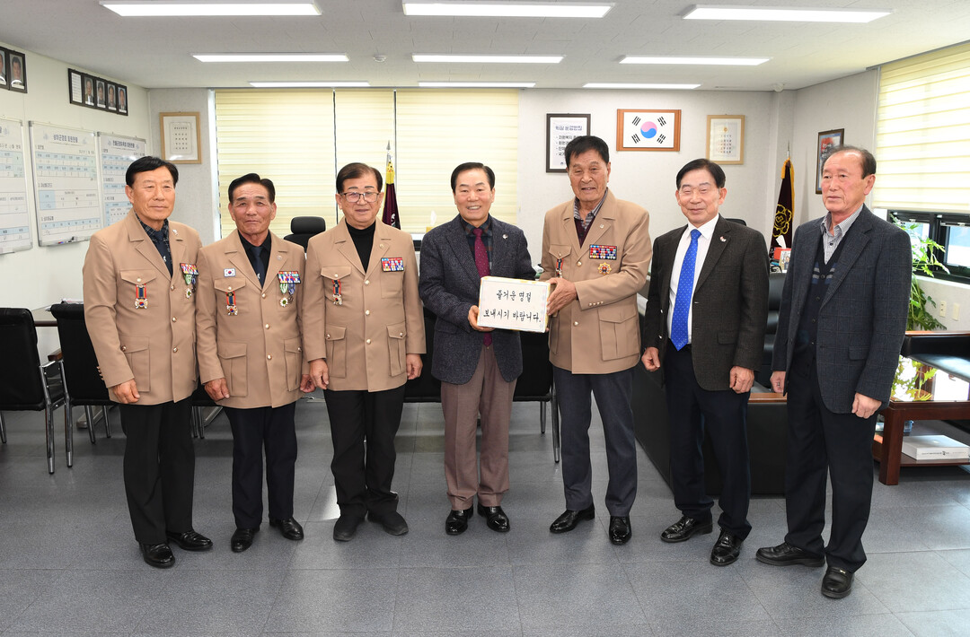 | ▲ 성낙인 군수가 보훈회관을 찾아 명절 위문 활동을 하며 기념촬영을 하고 있다. [창녕군 제공] |