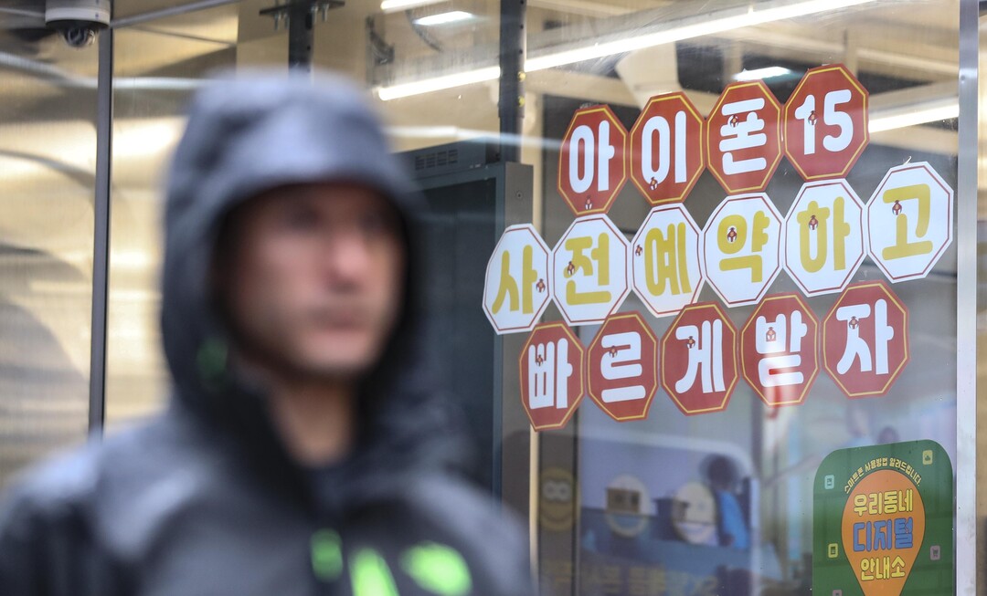 | ▲ 서울 중구의 한 휴대전화 대리점 앞에 아이폰15 사전예약 안내문이 붙어 있다. [뉴시스] |