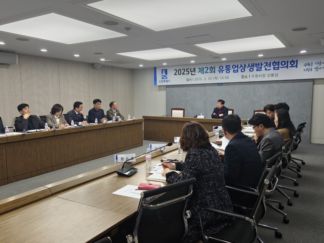 | ▲ '2025년 제2회 유통업상생발전협의회' 회의 모습. [수원시 제공] |
